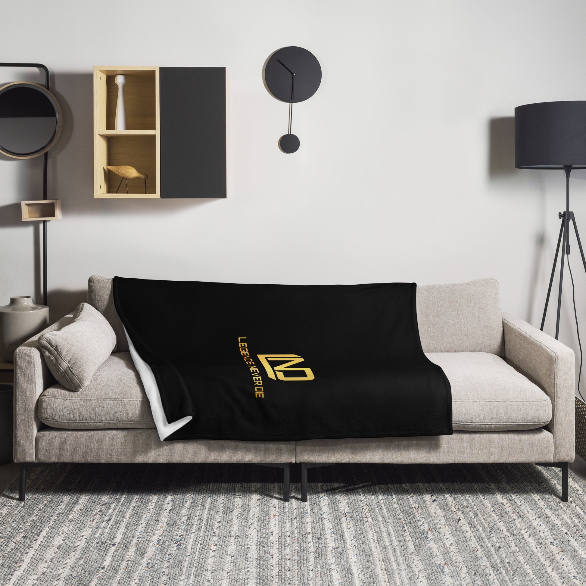 Wrap yourself in comfort and inspiration with the Black Throw Blanket featuring the gold LND logo. Soft, stylish, and timeless, it’s perfect for staying cozy while embracing the spirit of living legendary.